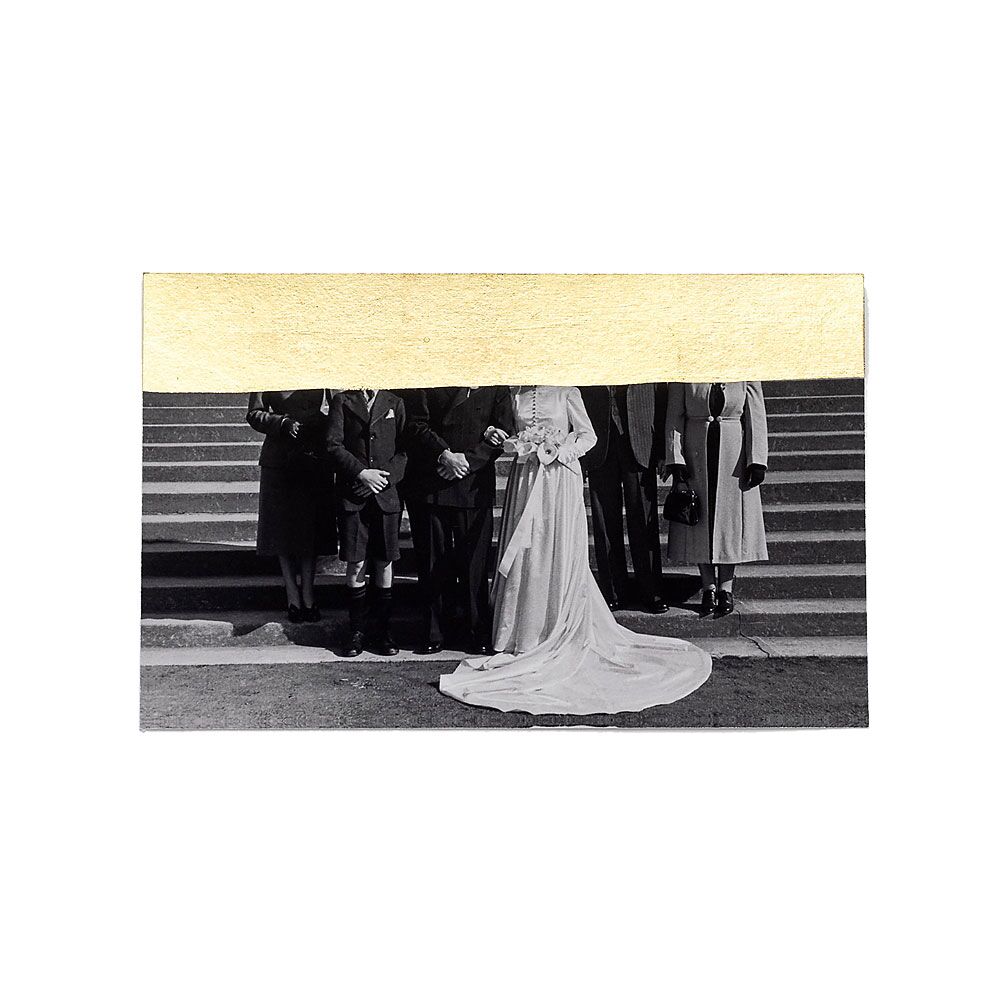 These scraps, given away for a few euros on the curb because the heirs no longer want them, change status by a simple gesture: the application of gold leaf on the photograph. By masking part of the image and, more specifically the faces of these ghosts, I multiply the possible projections tenfold.