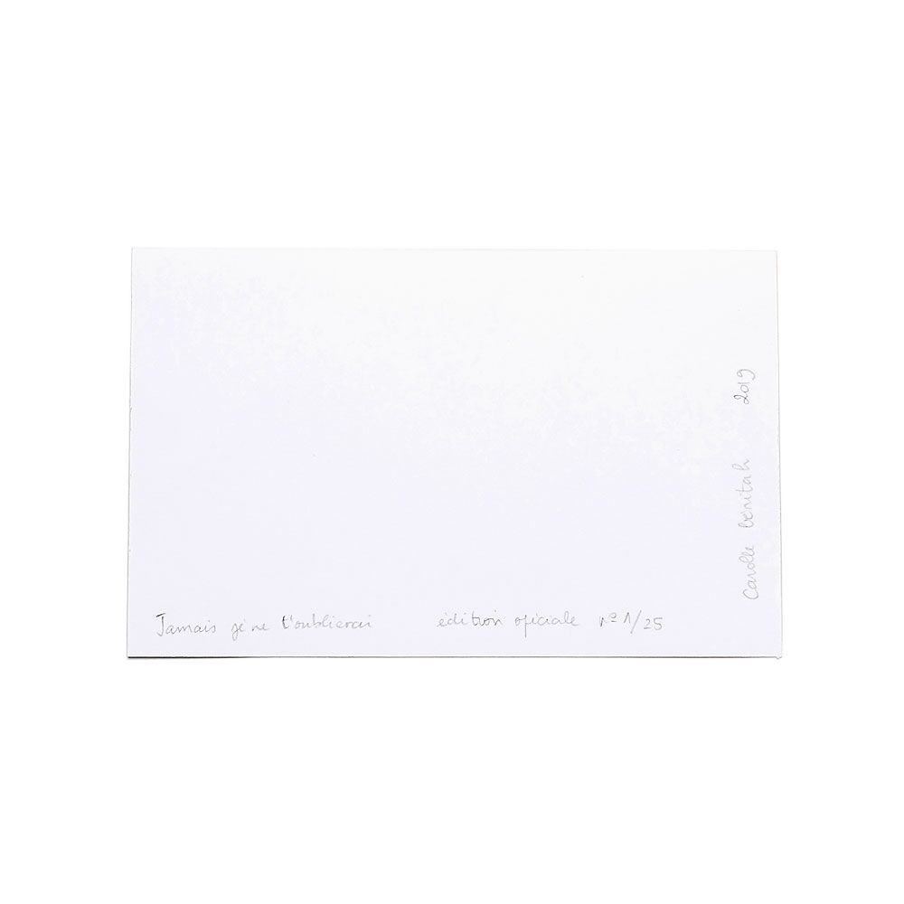 I collect anonymous photographs that I buy in flea markets. I am magnetized by the happiness displayed at attention in these photos, by these people I don’t know but who existed, loved, and disappeared. They are ghosts who follow me quietly, and I take them over to build an imaginary family album in order to repair oblivion.