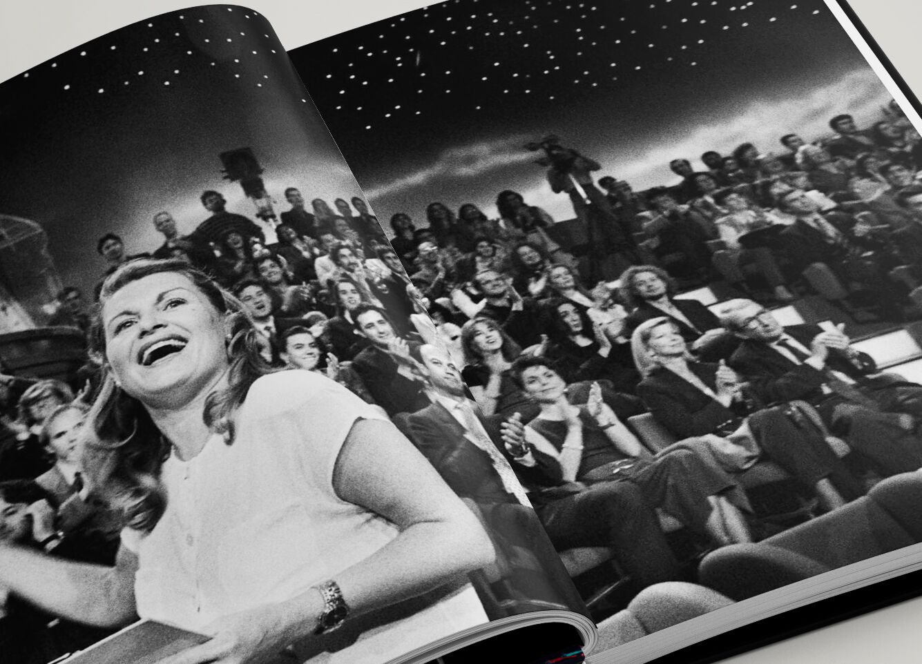 TELEVISIVA by Stefano De Luigi is a compelling visual investigation of Italian television culture during the rise of Silvio Berlusconi, spanning from 1994 to 2008. Shot entirely in black and white, the work peels away the glossy surface of the screen to expose the deep cultural and political transformations that occurred behind it. Through striking images from TV studios, game shows, variety sets, and audiences, De Luigi reveals a surreal theatre where entertainment, performance, and ideology merge.
